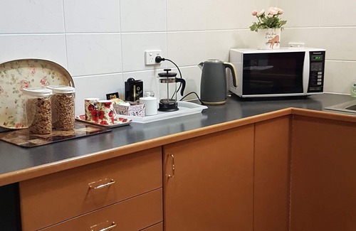Your own kitchenette contains a fridge, microwave, toaster and kettle and sink and a fresh continental breakfast is complimentary each day. The kitchenette is available at any time for refreshments.