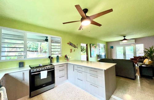 Completely Remodeled Home in Ceiba, Mountain Side, beautiful views!! Close to Luquillo, Farjado, Humacao, 5 Minutes Puerto Del Rey Marina, 45 min. to Airport another 10+ to San Juan. Minutes to Ceiba Ferry, takes you to Vieques & Culebra Islands! Our Mountain home is very peaceful, private, with lush plants & trees year round & protect by an electric gate! Plenty of parking space. HUGE kitchen, new beds, sheets, towels, furniture, outdoor dining. NEW Generator, Water Cistern/ AC! Once you come thru the gate to enter, you will have plenty of room to park. You will be greeted by our care takers of the property. They are there if you need anything, they live the in apartment downstairs. They speak spanish but can translate English. There is a locked gate to go upstairs where you will stay. The house will be cleaned and ready for you. We have some beach toys, chairs & a cooler you will need to check out before using. We have internet & smart tv’s in every room! If you need help with booking a car, we have a great connection!