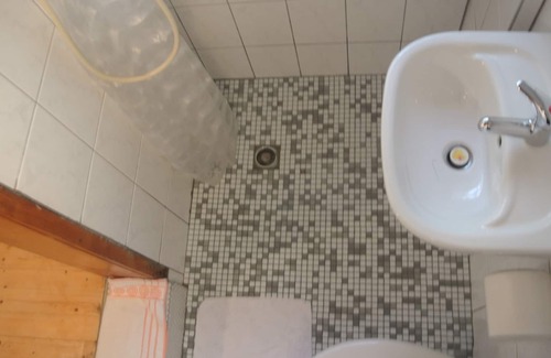 When you enter, you come into the kitchen with a practical kitchen cupboard from Grandma's time, but with a kiwi-green coating. The kitchen cupboard contains everything you need for cooking. A 4-plate electric stove with oven and a spacious fridge with freezer and a dishwasher complete the kitchen. Spices, salt, sugar, vinegar, oil, fresh coffee, tea bags and washing-up liquid are always available for visitors on the shelf above the stove. If something is missing, it is replenished.