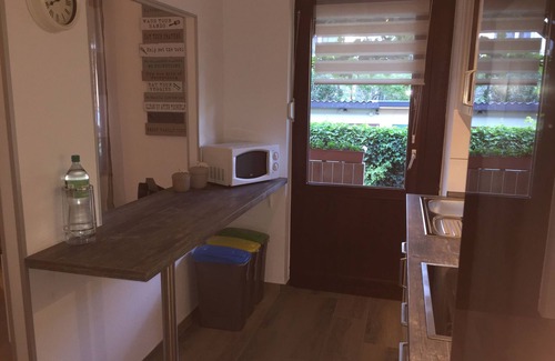 The 50m² non-smoking apartment is located on the ground floor and was completely renovated and refurbished in May 2018. It has a living room / bedroom, kitchen and bathroom. The open kitchen and dining area invite you to relax. In the dining area you will find an additional, comfortable bed. A terrace can be used.
