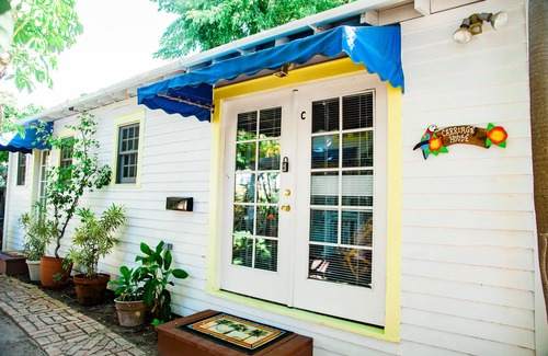 Stay in the Conch Republic Consul General's Cottage. Historic Carriage House is located a few blocks from famous Duval Street. Stay in a traditional Conch Style Home that features Mexican tile floors, spacious master bedroom with queen size bed, guest bedroom with full size bed and one couch sleeper sofa. Two full size bathrooms and inside washer/dryer. Central air conditioning, flat screen tv's and free wifi and open style full kitchen and living room. Pool on property. There is an additional cottages for rent upon availability. Vrbo #481491. Free off street parking spot. Cottage is popular with many repeat renters so reserving sooner than later is recommended.