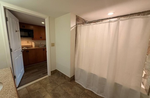 Freshly renovated open bedroom, living room, full bathroom, kitchenette condo unit at the Appalachian building right at the base of Mountain creek and next to the Mountain Ski Resort, Bike and Water Park.