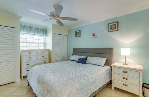 Nestled along the first channel inward from Treasure Island Beach, this light and breezy vacation rental in Treasure Island offers regular sightings of boats, dolphins, manatees, and sunsets. Slide on your flip-flops for the half-mile trek to the shore, take advantage of the private dock access to reel in your catch of the day, or grab one of the provided kayaks and explore the Gulf of Mexico. End each adventure-filled day back at the 1-bed, 1-bath condo for a sunset soak in the community pool.