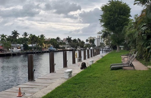 Welcome to your home away from home in Pompano Beach! A quiet secure two story 16 unit condo property with a full time property manager on-site. This fully equipped ground floor condo is just a short 10 minute walk from the beautiful Pompano Beach, and is surrounded by an array of fantastic restaurants, bars, coffee shops and shops. Need groceries? No problem! The Publix grocery store is located right next door. Inside, you'll find a tastefully decorated condo with two bedrooms featuring a King bed and two Singles (which can be put together for a queen), two full bathrooms, a full kitchen, a comfortable living room and two large flat screen TVs.. Additional amenities include quality linens, towels, beach towels, a beach wagon, beach umbrella, 2 hair dryers, iron, ironing board, high speed internet, Wi-Fi, and a quiet central AC and heating system. Take a dip in the heated pool or relax on the deck and grill up some dinner. You'll also have access to a reserved parking space for one car (with extra paid parking available across the street), as well as a full laundry facility on site. The location of this condo is truly unbeatable. The beach front offers Pier fishing, a beautiful sandy beach, splash pad, playground for kids and several waterfront restaurants. Nearby you can find a diving center, fishing pier, gyms, boat rentals, tennis, pickle ball, golf, Fort Lauderdale Water Taxi and shopping. Bring your bike or rent a bike and ride up and down the coast or ride the off road 4.4 mile loop around Pompano Airpark. With or without car this condo is surrounded by all the conveniences for a fun and memorable vacation!