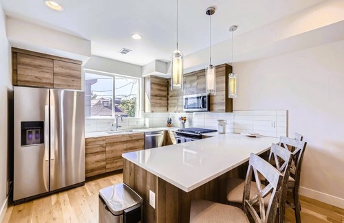 This sleek, modern three-story townhome is designed with both comfort and convenience in mind—perfectly situated just blocks from Sloan’s Lake and Empower Field. Whether you’re catching a Broncos game, enjoying a weekend getaway, or settling in for an extended stay, this stylish retreat near downtown Denver offers everything you need—including breathtaking rooftop views and upscale amenities.