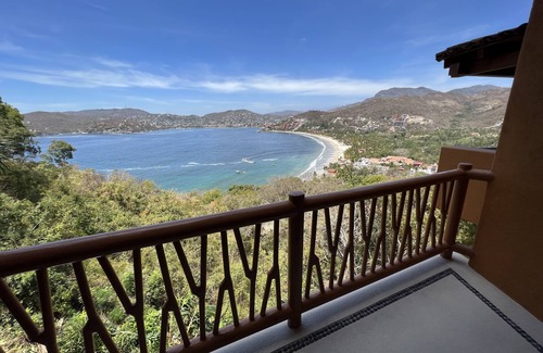 This large sunny condo is one of five condos in a secure gated condominium which has a great view of the bay and it's beaches from a privileged higher area located across the Zihuatanejo town.