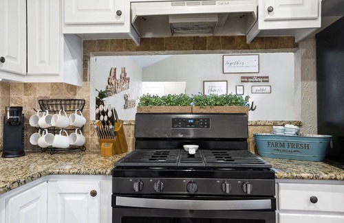 A beautiful kitchen with hardwood cabinetry, state-of-the-art appliances, and spacious countertops will satisfy all your needs if you decide to prepare any homemade delicacies.