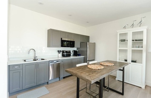 The kitchen is equipped with basic cookware to prepare meals for dining in. Meals can be prepared using the induction burner, Ninja Air Fryer, Insta Pot, or BBQ. There is a Keurig coffee machine and complimentary coffee pods.
