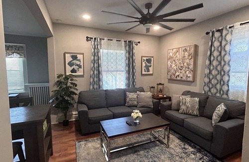 Renovated apartment with two bedrooms , impeccable furniture , big tv screens on every room. Full kitchen with all silverware to prepare delicious meals, on a convenient location 3 minutes from center city Allentown.