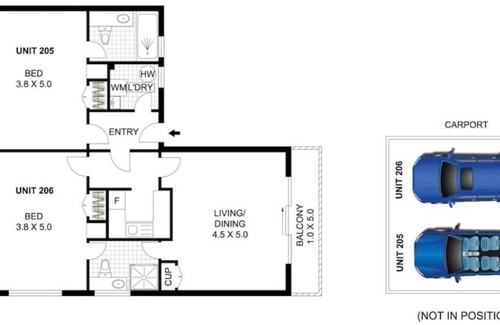 PARKING: There are two allocated parking spots for the unit. Drive into the car park and find the building on the opposite side of the car park to the reception building. Find the undercover car park labeled 205 and 206. They are just outside the apartment.