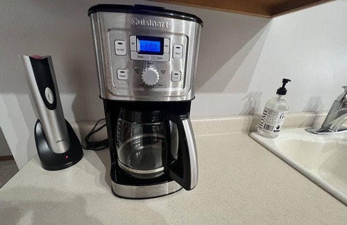 The kitchen is fully stocked with newer Samsung appliances and all the tools you'll need to prepare a wonderful meal or simply pop some corn for a movie. The dining table seats 6 people comfortably. There is a microwave of course, an electric kettle, and a Cuisinart coffee maker. We provide Folger's dark roast type coffee with filters, non-dairy creamer and sweatners. There is a coffee grinder there if you want to bring your own beans.