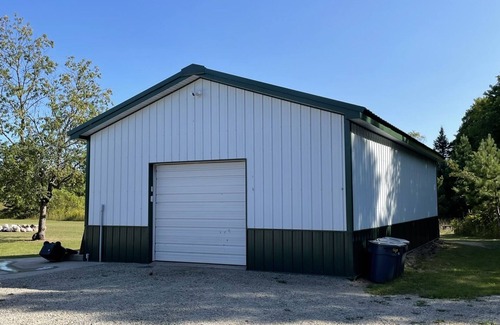 Close to ATV and Snowmobile trails on a large lot set back off a gravel road. This cabin has everything you could want or need. The full sized kitchen and large dining area are perfect for large groups or small family trips. The main living area is open to the kitchen with 2 comfortable recliners, a full sized sofa, and wood stove. The bunk room is equipped with theater seating so the kids can game at night while the parents relax in the living area. The driveway has ample room for large trailer maneuvering and parking. The garage is available at an additional fee of $75/night.