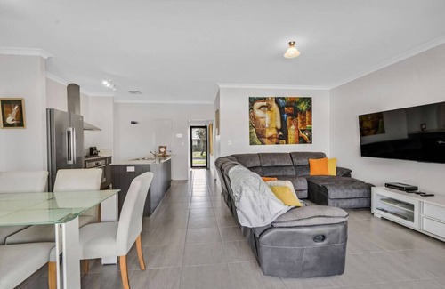 This 3x2 home is set up for relaxed, comfortable living. Each of the three bedrooms has a queen bed and built-in robes; the master enjoys its own ensuite, while the main bathroom includes a full bathtub for a long soak after a day out. The living room invites slow nights with a Smart TV and fast, free Wi-Fi, and a proper laundry (washer and dryer) keeps longer stays simple. When the mood turns playful, head to the mancave for darts at the board, a seat at the bar, and a little nostalgia from the memorabilia.