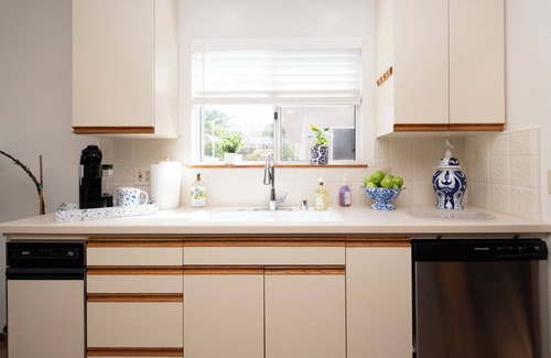 Beautiful cozy, private entrance,1400 sq ft single story residence; furnished includes 2 Bedrooms, 2 Baths, Living Room, Dining Room, Kitchen and Laundry Room with complimentary washer and dryer. Can accommodate 4 guests as each bedroom has a Queen Size bed all with luxurious beddings for comfort.