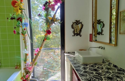 Relax in the garden (enjoy the outdoor furniture!) or sip a drink in the spa tub of this vacation home. When you come inside, connect to the WiFi or get cozy in front of the TV (video library available). There's also a DVD player, a stereo, and a music library for your enjoyment.