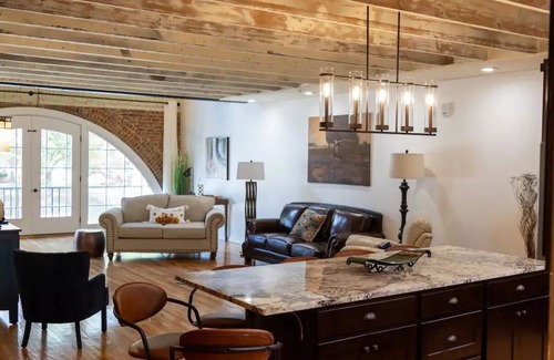 Finally ready! Completely renovated 100+ year old building. We brought back the 20' wide arch window that had been removed, added frenchdoors and a balcony to overlook the beautiful downtown Glasgow Square! A very unique and spacious property. Just walk out the door to food, shops and fun! Enjoy everything you need to spend a night or a few weeks. Make this your hub to tour south central Kentucky! Need more space, book in conjunction with The Plaid Peacock! 15 mins Mammoth Cave/Barren River