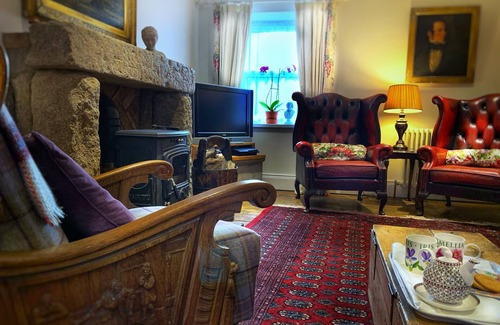 Victorian leather library chairs, Persian rugs, reclaimed original wooden floors, cast iron radiators, a red half door, a woodburning stove with massive granite mantlepiece made from Belfast kerbstones, antique wardrobes, period chests of drawers and tables have been used throughout.