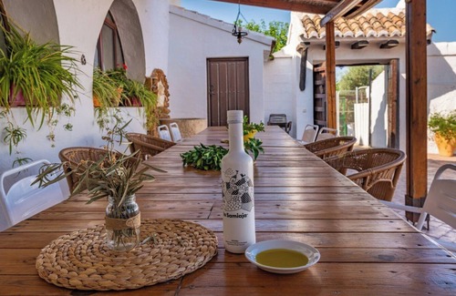 This authentic country house features a unique decor, which is typical of the big holiday homes of the Andalusian countryside. The spacious rooms and comfortable beds let a group of up to 20 people relax and spend the most unforgettable holiday here. The house is distributed on two floors, both decorated with wooden furniture, brick details and a general cosy ambience.