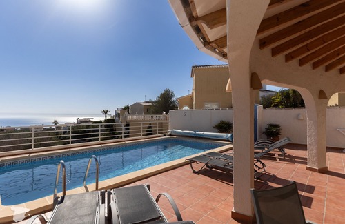Start your next holiday in Villa Diana, a beautiful holiday home for up to six guests, perfectly situated on the Cumbre del Sol along the stunning Costa Blanca. Nestled between the charming towns of Moraira and Jávea, this south-facing villa offers breathtaking sea views and a private pool, promising a relaxing getaway. Plus, the idyllic Cala Moraig beach is just a five-minute drive away!Step inside to the cozy living space, where two sofas, a smart TV, and a dining table create the perfect setting to unwind. The adjacent kitchen is fully equipped with everything you need, including a fridge, freezer, oven, gas four-burner stove, microwave, dishwasher, filter coffee machine, toaster, and water kettle. For added convenience, a guest toilet is located down the hall.From the living area, you can step outside onto the pool terrace, where breathtaking sea views set the perfect holiday mood. The private 8x4 meter pool invites you for a refreshing swim, while the surrounding sun loungers provide the ideal spot for relaxation. A lounge set with a comfortable sofa offers a shaded retreat, and the dining table makes outdoor meals a delight. By the dining area, you will also find a charcoal barbecue, perfect for grilling and enjoying al fresco dinners with family and friends.The villa offers three comfortable bedrooms. The master bedroom features two single beds, wardrobe space, air conditioning, and an ensuite bathroom with a bath/shower combination, sink, and toilet. The two additional bedrooms both have two single beds, air conditioning and wardrobe space. They share a spacious bathroom with a shower, two sinks, and a toilet. This bathroom also houses a washing machine and dryer for added convenience.For added convenience, the villa includes private parking for one large car, and ample free parking available on the street. Stay connected with free Wi-Fi throughout the property.Whether you're soaking up the sun by the pool, exploring the nearby coastal towns, or simply enjoying the tranquil surroundings, Villa Diana offers everything you need for a perfect getaway on the Costa Blanca.Please note:1: Smoking is not allowed in this accommodation.2: One (1) well-behaved pet is allowed up to 10 kg. Additional fee: €50.3: The maximum number of tenants is strictly limited to 6 persons; exceeding this number is not permitted.4: The villa is located in a residential area. Parties and excessive noise after 22:00 are prohibited at all times.5: You rent a private accommodation. Toilet paper and soap are provided upon arrival, but you must restock them yourself.