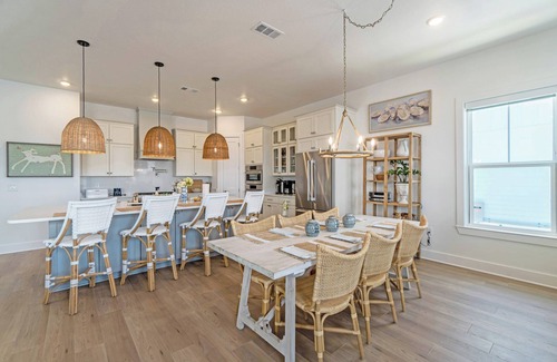Costie’s Place is a brand-new luxury five-bedroom, five-and-a-half-bath home that sleeps up to twelve guests. Perfect for multi-generational families or groups, this retreat blends modern coastal elegance with convenience, comfort, and breathtaking water views.