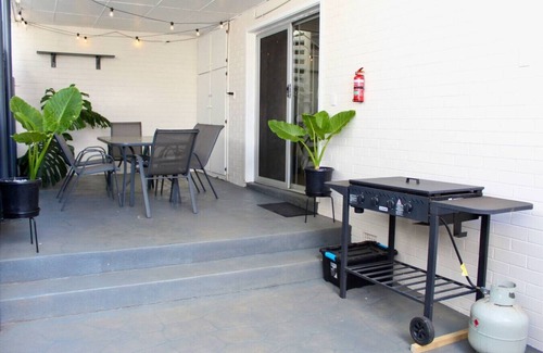 Guests have full access to the side patio area complete with an outdoor setting, BBQ and festoon lights.