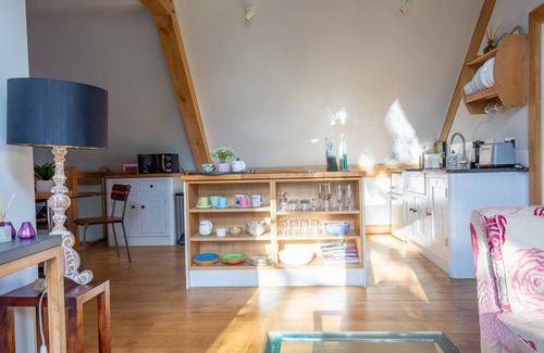 The Sycamore is a light and airy Cotswold holiday apartment which sleeps two guests (no children aged nine or under permitted except for one babe in arms on request), in a spacious bedroom, with a separate bathroom. Located on the first floor, this delightful retreat is flooded with natural light from the apex window, boasts a fully equipped kitchen, and with tasteful decor and stylish interiors, it is the perfect setting to escape from the hustle and bustle of everyday life. Just a short walk from Bibury's beautiful river makes this a perfect Cotswold gem to stay in!