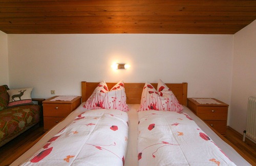 "Klocker", 5-room apartment 100 m2. Practical furnishings: 2nd upper floor: living/dining room with dining nook and satellite TV. 2 rooms, each room with 1 sofabed, 1 double bed, hand-basin and shower. Exit to the balcony. 1 double bedroom with hand-basin and shower. Kitchen-/living room (4 hot plates, dishwasher, toaster, electric coffee machine) with dining table. Sep. WC. Heating. Carpet. Balcony. Facilities: children's high chair, baby cot. Internet (WiFi, extra).