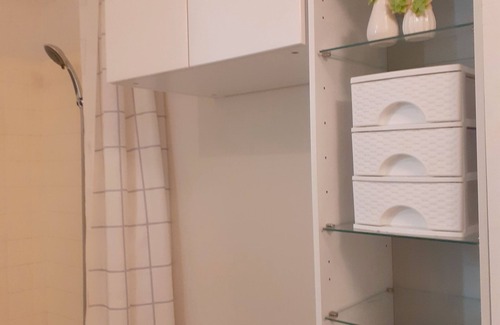 The kitchen is equipped with an oven, a stovetop, and a refrigerator, as well as an electric kettle, a microwave, and cookware. Bathroom amenities include a hair dryer, a bidet, and towels. And you won't have to pack extra clothes, because you'll also have access to laundry facilities. Other amenities at this 2-bedroom, 1-bathroom rental include a sofa bed, bed sheets, an ironing board, and heating.