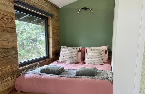 Escape to a nature in this enchanting tiny cabin for two. Immerse yourself in tranquility with sweeping views of Mont Blanc. Indulge in the warmth of a crackling campfire or venture out to embrace the winter wonderland with doorstep access to scenic snowshoe trails.