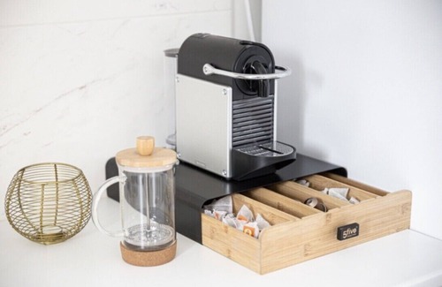 A living room, a sofa bed, and a desk are featured at this 2-bedroom, 1-bathroom rental. Prepare a home-cooked meal in the kitchen, complete with a stovetop, a refrigerator, and a dishwasher, as well as a coffee maker, an electric kettle, and a microwave.