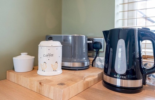 Though small, it’s stylish and equipped with everything you need to prepare meals. Enjoy the convenience of an air fryer (Unfortunately our lovely property didn't quite have the space for a hob or oven/cooker), but we have a microwave, kettle, toaster and a selection of tea, coffee and sugar.