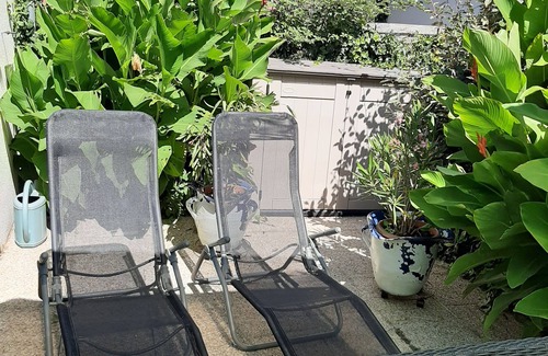 - The cotinière - in ground garden spacious new studio of 25 m2 with private entrance in enclosed garden: Terrace: Pergola with its living room - garden table and chairs. electric barbecue-