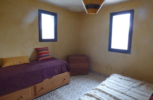 The farm is an excellent starting point for visiting the imperial cities of Fez and Meknes. You will enjoy the calm of returning from a journey in these tumultuous but no less fascinating cities. The region of Annoucer, known for its many lakes, is ideal for hiking donkeys, hiking or motorbike, through a multitude of trails connecting lakes and Berber villages scattered in the mountains. You will be welcomed in a farm (2500 fruit trees and vegetable garden) and will be housed in a cottage with two bedrooms, a living room, a kitchen, a bathroom and sanitary. In winter, heating is provided by a wood stove. The lodging can be in free management or if you wish, to taste the good Berber dishes made by Khadija, on order. The sleeping capacity is 5 people distributed in two rooms. The benches of the Moroccan lounge can also accommodate one or two additional people, for an additional charge of 12 € / person.