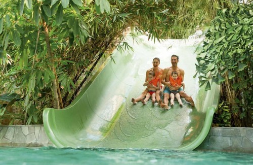 Large, child friendly resort "Park Les Trois Forêts". 2.5 km from the centre of Hattigny, 75 km from the centre of Nancy, outside the resort, 90 km from the centre of Strasbourg, in the countryside. For shared use: swimming pool, indoor pool heated (seasonal availability: 01.Jan. - 31.Dec.). Shower/WC in the pool area, children's pool, slide, hot tub, tennis (extra), volleyball court, children's playground, petting farm. In the complex: reception, restaurant, WiFi, sauna (extra). Massage (extra). Steam room (extra). Bowling (extra). Shopping facilities, boutique, central heating system, bicycle rental. Available: canoe (extra). Pre-arrival grocery service. Central parking spaces. Railway station "Sarrebourg" 18 km. Nearby attractions: Parc animalier de Sainte Croix 25 km, Chemin de fer d'Abreschviller 13 km, Parc régional des Vosges du Nord 50 km. Well-known lakes can easily be reached: Lac de Pierre Percée 30 km. Please note: car-free holiday complex, car recommended. Entertainment. Suitable for families, childminding (extra). The owner does not accept any youth groups. Fishing [permit required] (extra). The photograph shows a typical example. Additional accommodations can be booked.