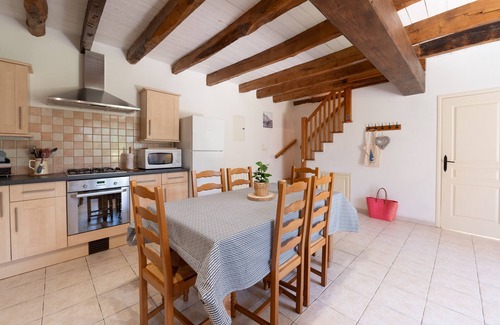 Located in La Vraie-Croix, the cottage Domaine de Lestroué - Île d'arz with step-free access has everything you need for a comfortable holiday. The 71 m² property consists of a living room, a well-equipped kitchen, 3 bedrooms and 1 bathroom as well as an additional toilet and can therefore accommodate 6 people. Additional amenities include Wi-Fi, a TV, a fan, a washing machine as well as children's books and toys. Furthermore, a table tennis table and a pool table are available on the property. A baby cot and a high chair are also available. Unfortunately, this accommodation does not offer: air conditioning. This vacation rental includes a private outdoor terrace and a barbecue.