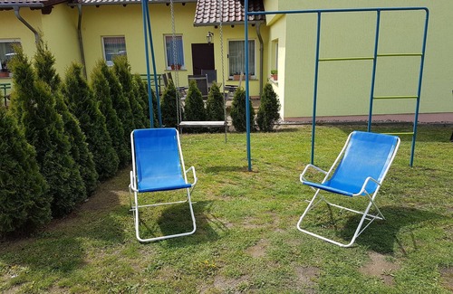 Outside there is a garden with seating as well as a barbecue hut for cozy barbecues. For your children there is a playground with swing, climbing frame, seesaw and a carousel.