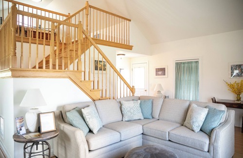 This spacious and airy open-plan cottage with loft has a full equipped kitchen, large bathroom with garden tub, romantic fireplace. The queen bed sleeps two.