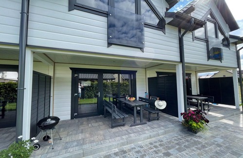 A family holiday resort in a very quiet area, 200 m from the beach. Just a few steps to the resort center. On the fenced property there are 11 comfortable, terraced holiday cottages and a sauna (for an additional fee). Each cottage is comfortably equipped and tastefully decorated. The houses are two-story. On the ground floor there is a spacious living room with TV and table. The living room is connected to a well-equipped kitchen (including washing machine, dishwasher, coffee machine). There is also a bathroom with a shower on the ground floor. On the first floor there are 2 large, separate bedrooms. The houses have covered terraces with a set of garden furniture and barbecue equipment. The houses have air conditioning with cooling and heating functions, which makes your stay comfortable at any time of the year. Wireless internet is available. There is a very attractive playground for the youngest, as well as a nice and well-equipped playroom. There is a bicycle rental service, as well as a sauna and whirlpool (for a fee). The price of the stay includes: bed linen, internet, parking, baby cot and high chair (registration required). Sianożęty is a small holiday resort located approximately 10 km from Kołobrzeg, in the immediate vicinity of another seaside resort - Ustronie Morskie. Sianożęty is located right next to a wide beach. Golden sand and gentle access to the sea encourage vacationers to sunbathe and sea. In the neighboring Ustronie Morskie there is also a 100-meter long walking pier. The R-10 international bicycle route runs through Sianożęty. It runs along the coast and provides amazing views of both beaches, clear sea and charming peat bogs. From here you can get easily and pleasantly by bike to the nearby Ustronie Morskie, but also to the large city of Kołobrzeg.