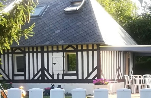 cottage located in a green setting, 3km from Pont l'Evêque, and 15km from Deauville. Private parking. Private garden. BBQ, deck chairs. Sallon with sofa bed. Mezzanine with sofa bed. A room with a bed of 140x200. fridge freezer, microwave oven, ceramic hob, washing machine. bathroom; shower, bathtub. hiking nearby.karting, lake of the bridge the bishop with activities.