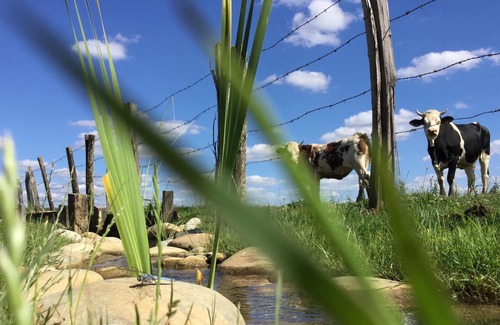 Quiet, in nature, lulled by the sound of water, this home is the delight of Corine, Franck and Eva who will be there to welcome you in their gîte. It is completely new, can accommodate 4 adults, 6 if there are 2 children. It is located on the 1st floor which gives it a very nice view of the cow fields from the living room, the terrace overlooks the canal. From the rooms you have the view of our waterfall.