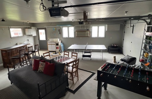 Plus....the super awesome game room. This game room has a ping pong table, bar (BYOB), foosball table and chairs for games and much more.
