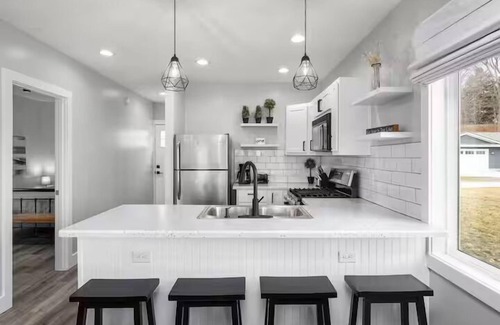 Indulge in panoramic views of the sunset over the lake from our 2-bedroom house in Montague, Michigan! This newly-renovated space features a sleek, luminous and modern aesthetic that appeals to the most discerning guests. With the deep waters of White Lake channeling into Lake Michigan and its close proximity to the town, parks, beaches and trails, our space is simply a dream.
