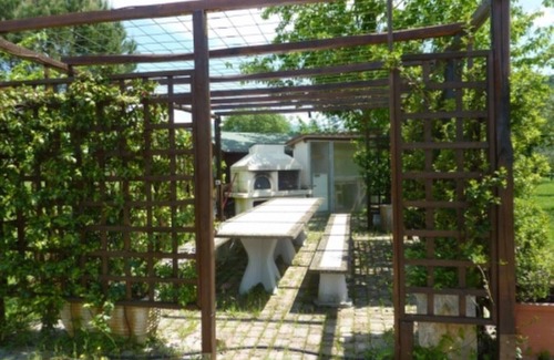 It has a large well-kept and fully-fenced garden of one hectare with many different trees - tall oaks, pines, poplar and cypresses. There are also fruit trees and a vegetable garden of some 100 m2. The guests are welcome to help themselves to whatever produce is in season - fruits, lettuces, tomatoes, herbs, peppers, courgettes, melons.