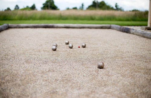For boules players, the landscaped field runs alongside the house (see photo)