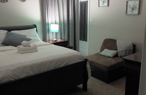 Property is located in countryside. Guests occupy bedrooms located in the west wing of the building. It is one story house with 3 full bathrooms, 2 living rooms . Guest office area is located in the guest living room. The kitchen and laundry room are available to guests , shared with Host