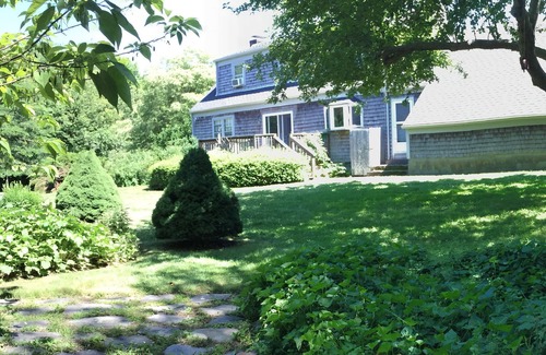 3 bedrooms, 2 baths on two floors. Deck off a fully-equipped kitchen. Mudroom and attached garage. Cable TV, WiFi, washer & dryer, dishwasher, wifi. Eclectic library. Outdoor shower for after-beach clean up. Walk to the town Commons and a quick trip to the beaches. Quaint, unassuming, easy, no-hassle summer living.