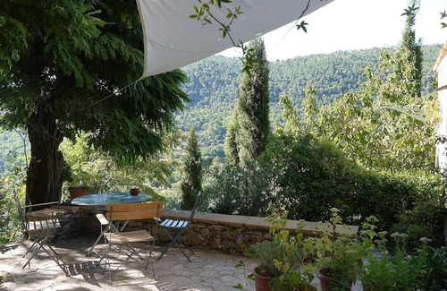 La Peirégoué was originally a "cabanon" where villagers rested after tending their orchard and vegetable garden. The house was progressively enlarged to its present size but it has retained its bucolic charm. We bought it 35 years ago mainly for the beauty of its old terraced garden on a fairly steep incline. It features an olive orchard, fig and cherry trees, a magnificent secluded swimming-pool, a pétanque strip, fountains and plenty of tree-shaded areas to escape, rest and read. The house is on 3 levels with direct access to the main level including a large living-room with dining area, log fireplace, the spacious eat-in kitchen and a bathroom. In summer, meals are enjoyed in a sheltered area on the main courtyard shaded by acacia trees. The upper level consists of 3 bedrooms, a bathroom and a large terrace overlooking the valley. At pool level, there is a separate flat with a double bedroom, a single bedroom , each with arched French windows giving onto the garden, and a bathroom with a stand-up shower and toilet. This is a family home, very personal, with memorabilia, art and a warm, cosy atmosphere. 10mn walk away, Bargemon is a lovely and lively village, actually the liveliest in the area, offering all facilities (doctor, pharmacy, post-office, supermarket, property agencies, shops, museums, municipal tennis court and swimming pool, ATM) and seven restaurants. The village has several squares each with its fountain and shaded by tall plane trees. The main square, place Chauvier, is where villagers and tourists congregate the whole day long around a glass of wine or pastis to see everyone else and hear the latest gossips. Bargemon is ideally located between the sea and the first ski slopes, 50 minutes drive away. The Grand Canyon of the Verdon is close by as well as an infinite variety of spectacular landscapes, mountain lakes and hilltop villages. The area is famous for cycling , trekking, hang-gliding and sports two beautiful golf courses 30mn drive away. Côte de Provence vineyards and wineries are in close proximity. In summer Bargemon and the neighbouring villages organise cultural events and music festivals. The art museums in St Tropez, Antibes, St Paul de Vence and the like are only 1 hour drive away. Draguignan, the closest town, has a beautiful open market and a great Provencal arts and traditions museum.