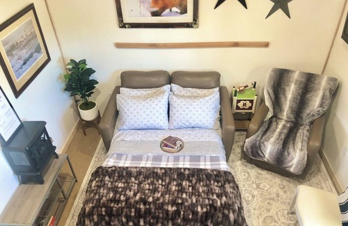 Welcome to The Retreat. Located off Hwy 13. A cozy barn styled tiny cabin with panoramic Mountain View’s and large loft. The Retreat has the most spacious bathroom in a tiny house. This bath has a 5 ft tub/shower, 5ft closet, 42in vanity. You’ll enjoy an inviting cedar front deck with white rocking chairs to watch the ample deer, turkeys, elk, quail and pheasant that stroll by. Southfork of the Clearwater River is an 8 minute drive for world class fishing. The majestic view is breathtaking from the seasonal pool.