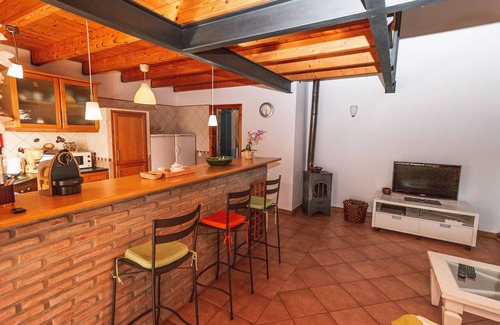 When you open the front door, by you will be received the sight of an open space where you can find the diner table, the living area with two sofas, television, wifi connection and the who have kitchenette the counter made with old terracotta bricks, Allowing you to enjoy a glass of wine while you keep an eye on the stairs metal backbone. Perfect for a romantic dinner setting.