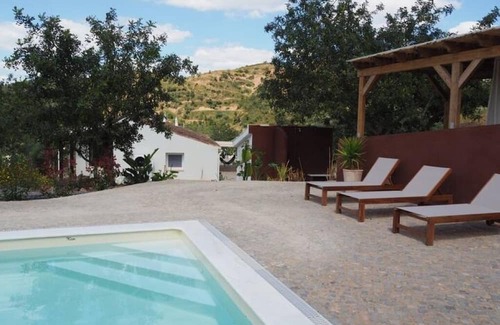 "Cova do Coração" translates to "Cave of the Heart". It’s a special recently restored farmhouse in a small Portugese hamlet. With 4 bedrooms, 3 bathrooms, an outdoor kitchen with a BBQ and a wonderful new pool, it's a lovely holiday home. Nestled amongst serene hills - perfect for morning walks - it's beautifully in touch with nature. Olhão and Tavira are 20 mins away, Santa Catarina 7 mins and the beach 20 mins too. We also host yoga retreats if you search the house name online.